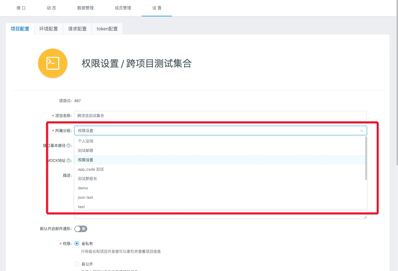 - 邮件通知:开启后将此次接口的改动以邮件的形式发送至项目组所有成员和关注该项目的成员(邮件默认情况下自动开启)