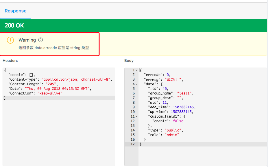 版本 v1.3.22 新增返回数据验证功能, 如果接口的返回数据格式为json schema 在接口运行时会对接口返回数据和定义数据格式进行校验