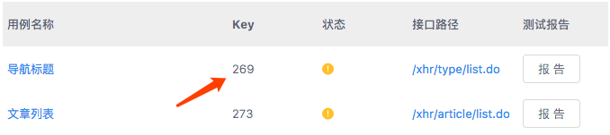 在测试列表可以看到每个测试用例的 key,还有 开始测试、报告等功能