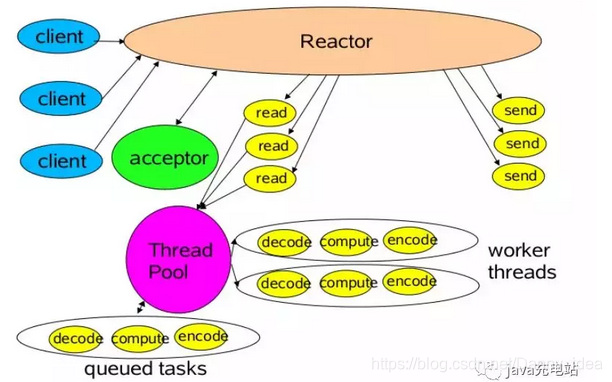 单线程模式的Reactor有一个很明显的缺点,那就是在处理请求的时候,对于不同状态的通道处理,以及请求的监听全部都放在了单个线程上进行,(多个Channel可以注册到同一个Selector对象上,实现了一个线程同时监控多个请求状态(Channel))因此效率很低下。因此就会有了第二种Reactor模式。