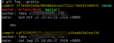 git log --pretty=oneline (一次提交占用一行,格式稍微好看些)