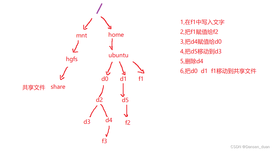 ubuntu@ubuntu:~$ sudo cp -r d0 d1 f1 /mnt/hgfs/