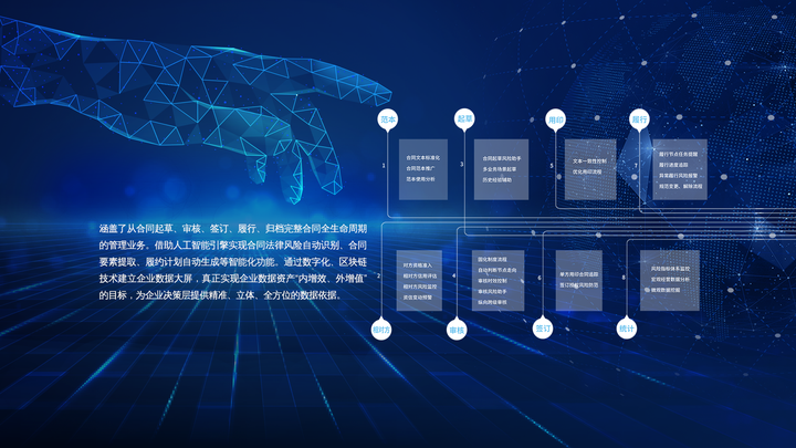 道本科技智慧合同管理模块覆盖了合同管理的各个环节,包括合同起草、审核、签订、履行和归档等。通过智慧合同管理系统,企业可以实现合同管理的全自动化作业模式,提高工作效率和质量。在合同的全生命周期中,系统会对相关业务法律风险进行事前预防、事中控制和事后分析补救,确保合同的合规性和风险可控性。