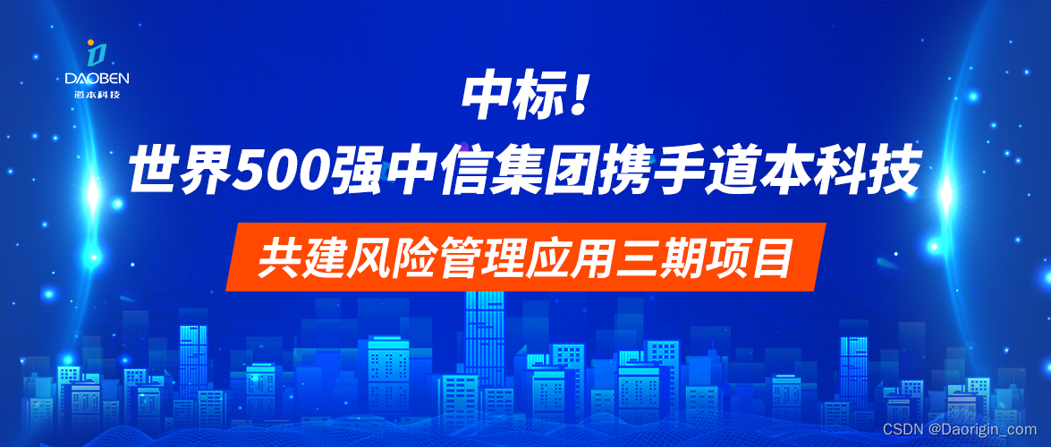 近日,天津市道本科技有限公司(以下简称“道本科技”)中标世界500强中国中信集团有限公司(以下简称“中信集团”)风险管理应用三期建设项目。