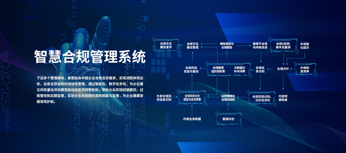 ★ “智慧合规”管理平台更可以为加强完善企业合规治理体系,推动合规管理长效机制建设,健全风险管理体制机制,持续提升内控合规水平,不断夯实合规运营基础。