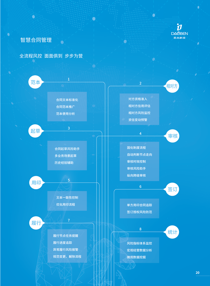 此外,利用先进的技术手段,道本科技智慧合同管理平台还包括合同范本库、合同范本识别、合同条款大数据应用等功能,助力企业实现合同管理降本增效的同时,极大地提高了合同管理的精度和广度,帮助企业向高质量管理大跨步迈进!