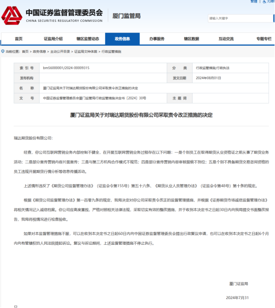 在当前监管日益严格的环境中,期货公司面临的合规挑战愈发严峻。2024年8月初,厦门证监局和山东证监局对多家期货公司及其相关人员因互联网营销、居间业务等方面的违规行为进行了处罚。这些处罚案例涉及内部控制不健全、审核留痕不到位、以及员工未经资质审查即开展业务等多个方面,凸显了期货公司在合规管理上的漏洞。