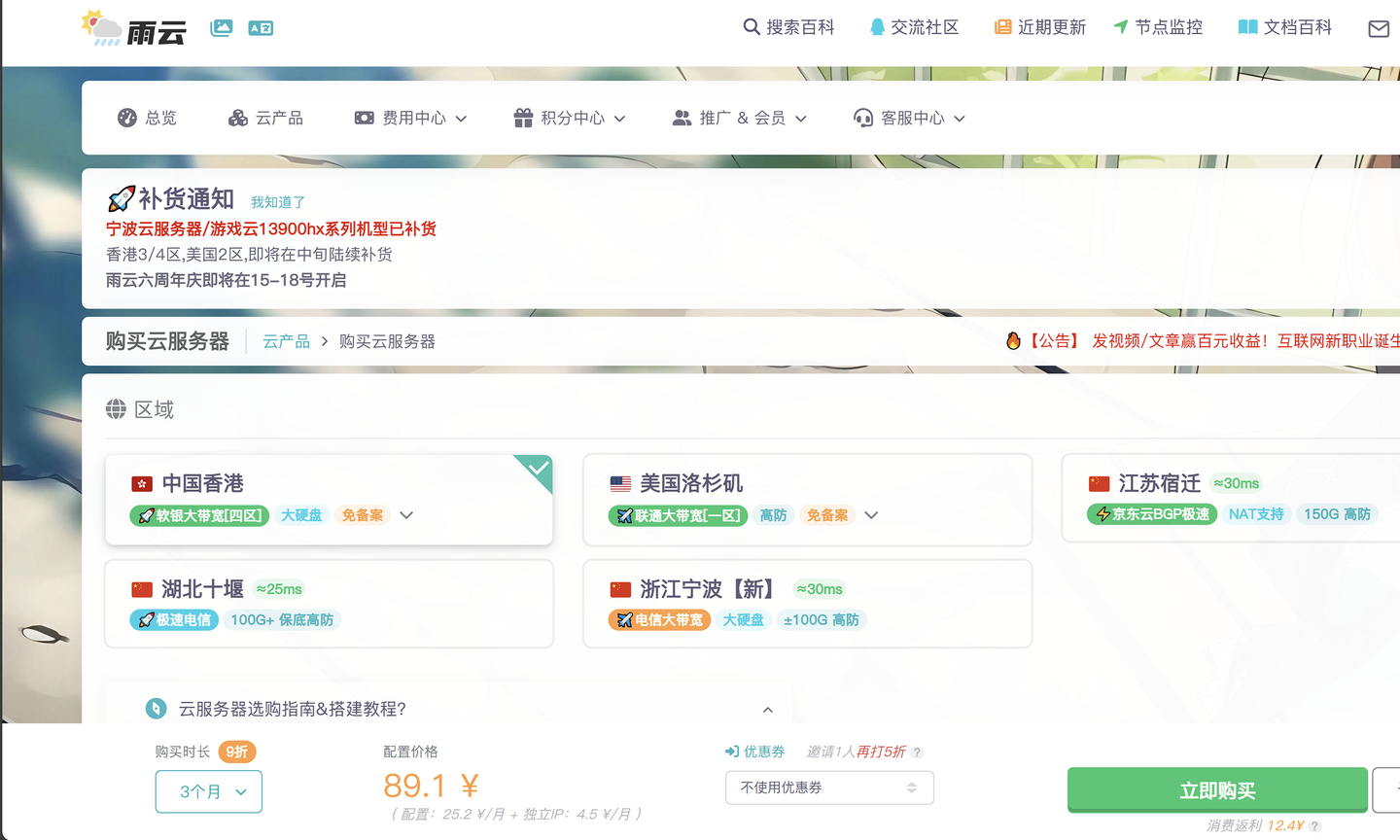 所以→雨云 - 老一代云服务提供商 购买服务器