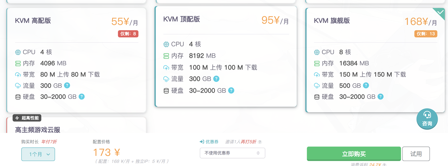 1.雨云服务器正打折时刻,免费领取 MC面板/虚拟主机/对象存储,价格优惠,我用了2年,非常稳定,也有客服进行答疑解惑,是我的第一选择,我自己的网站也部署在雨云的服务器,非常值得信赖