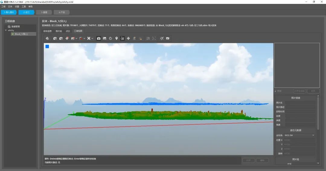 武汉试点在对部分区域进行采集时,采用了最新的激光扫描和倾斜摄影一体航摄仪——CityMapper-2大画幅相机进行原始数据采集,得到的单个影像大小高达1.5GB,总相片数量约80000张,最终导致原片数据量超120TB。面对如此庞大的数据生产量,空三能否顺利通过直接影响后续工作的稳步推进。
