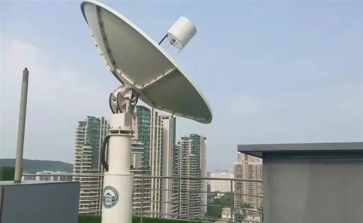 跟随“珞珈三号01星”技术总师王密教授,来到位于武汉大学信息学部教学实验大楼天台上,见到了一个小型卫星地面站。
