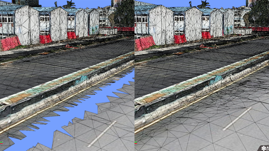 左:其他软件 右:网格大师接边完整无漏洞、无重叠