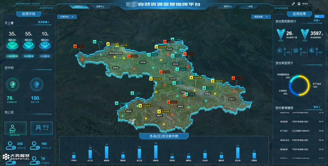 “实景三维是未来地图,也是数字中国未来不可缺少的基础设施。”大势智慧未来地图事业部总经理徐亮先生指出,当前自然资源监管重点以土地和矿产资源为主,监管存在盲区、死角,且传统自然资源监管手段无法满足动态、实时监管的现实需求。为此,大势智慧利用云计算、大数据、三维仿真、人工智能等技术,为全国多个区域构建起了覆盖“天空地网”的自然资源监管体系,并赋能于多场景应用。