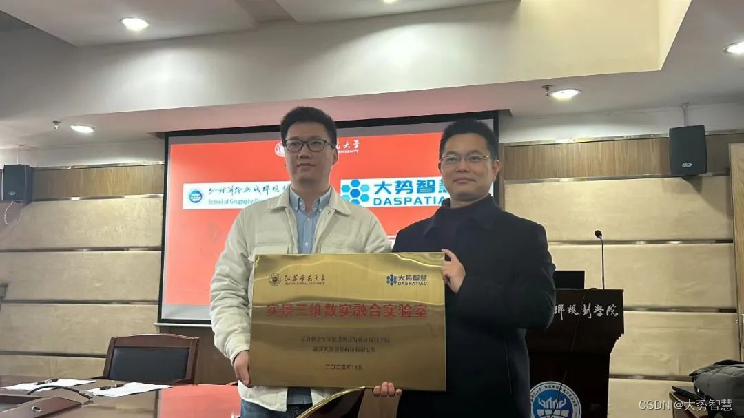 校企合作!大势智慧与江苏师范大学地理测绘与城乡规划学院联合共建“实景三维数实融合实验室”,双方将积极开展实景三维、数实融合、三维可视化等领域的产学研合作。
