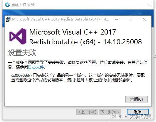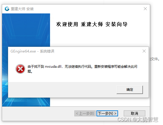 重建大师在安装时出现了下图“无法继续执行代码”的情况,该怎么解决?