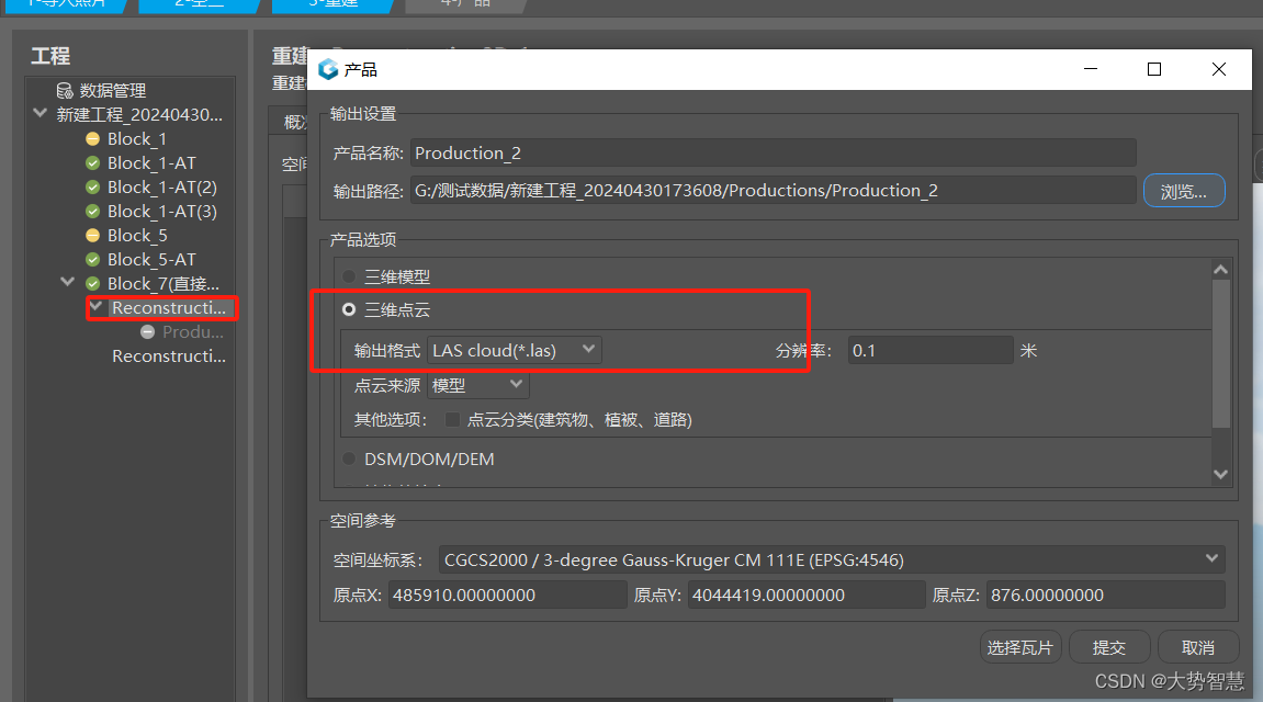 答:照片生成的密集点云需要导出成LAS格式在其他点云编辑软件里面进行裁切