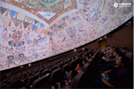 莫高窟球幕影院每年参观人数超过100万人次,球幕直径长达18米,使用6台投影机投射8K高清影片。因此对三维数据的要求极其严格,几何精度优于1mm,通常单个洞窟数据量达数十GB,我们通过自研贴图技术解决了复杂模型高保真纹理映射难题,现在在球幕影院里,观众能看到的不仅是洞窟全景,还能通过特写镜头看清壁画上毫米级纹理细节,甚至能多视角观看现场因空间限制看不到的雕刻细节。