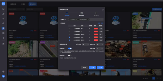 算法实例允许用户组合多个AI算法用于实时识别,支持标签级别置信度调整、设置画面识别区域,以及进行空间和时间约束。将AI识别结合空间、时间来实现不同行业线索的自动化发现。
