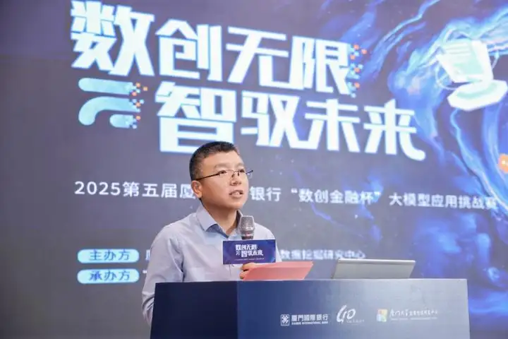 在决赛开幕式上,厦门国际银行首席信息官王丰辉表示,本届赛事不仅是响应国家“新质生产力”战略、做好“数字金融”大文章的重要举措,也是厦门国际银行在成立四十周年之际,对“智慧革新、数字引领”发展理念的生动实践。面对大模型技术带来的产业变革,厦门国际银行早在2019年就组建人工智能团队,并于2023年开启以大模型为核心的技术升级,持续推进Agent等前沿技术在金融场景的深度应用。王丰辉强调,当前大模型在银行业仍面临算力投入、数据质量、模型安全、工程能力、人才梯队等诸多挑战,更要坚持“开放、合作、共创”的理念,希望以本次大赛为纽带,汇聚行业内外智慧,激发创新活力,为银行数字化转型探索更多可行的路径。