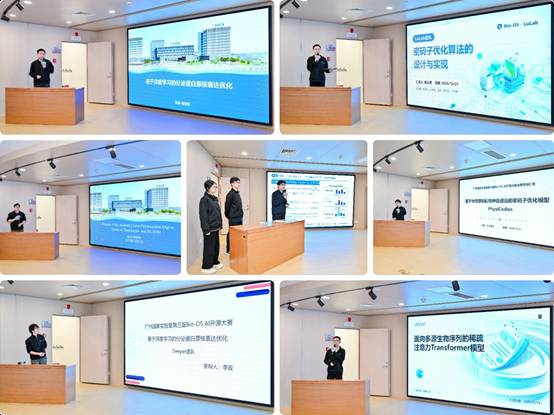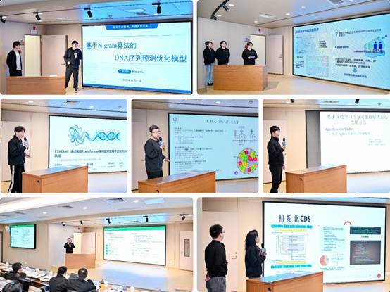 随后,14支晋级决赛团队依次登台。逐个展示了人工智能与生物信息学深度融合的创新方案。从AI模型构建到实验数据支撑,从技术突破点到应用前景,充分彰显了青年科研人才的创新思维与实践能力。