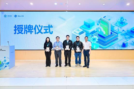 最后,本次活动还组织了Bio-OS生态社区系列大赛永久荣誉顾问授牌仪式。广州实验室副主任陈新文为Bio-OS生态社区系列大赛永久荣誉顾问颁发了荣誉顾问证书,标志着Bio-OS开源生态建设的进一步完善,为后续赛事持续开展、创新资源持续汇聚奠定坚实基础。