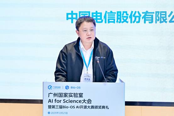 紧接着,中国电信股份有限公司广州分公司党委委员、副总经理刘洋表示,将充分发挥数字化服务优势,为科研创新提供坚实技术支撑,助力产学研深度融合,与各方共同构建AI赋能生命科学的创新生态。
