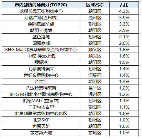 通过市内到访商场偏好结论我们可以发现:市内没有一家大型商超是我们的直接竞品,这是一个很大的优势,证明只要我们做的更好就能够吸引客户留住客户。