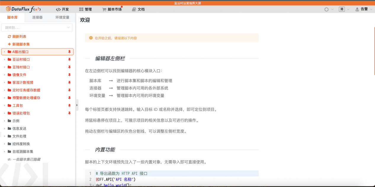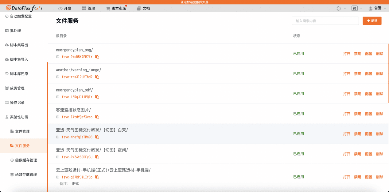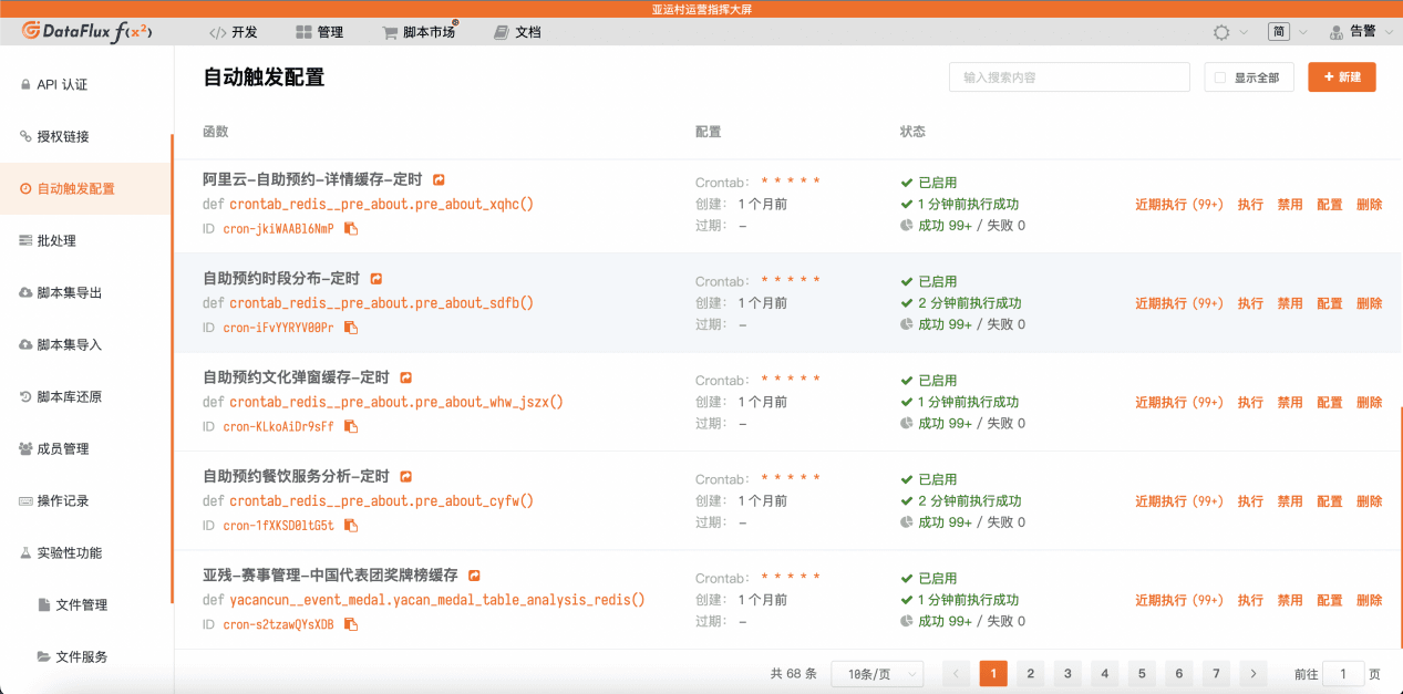 赛事、气象、任务剖面、每日值班数据,请求 f(x) 平台开放的上传文件 API 接口,推送每日数据,再由 f(x) 平台进行文件解析、数据清洗出亚运村大屏所需指标数据并生成亚运村大屏所需数据的 API 接口。