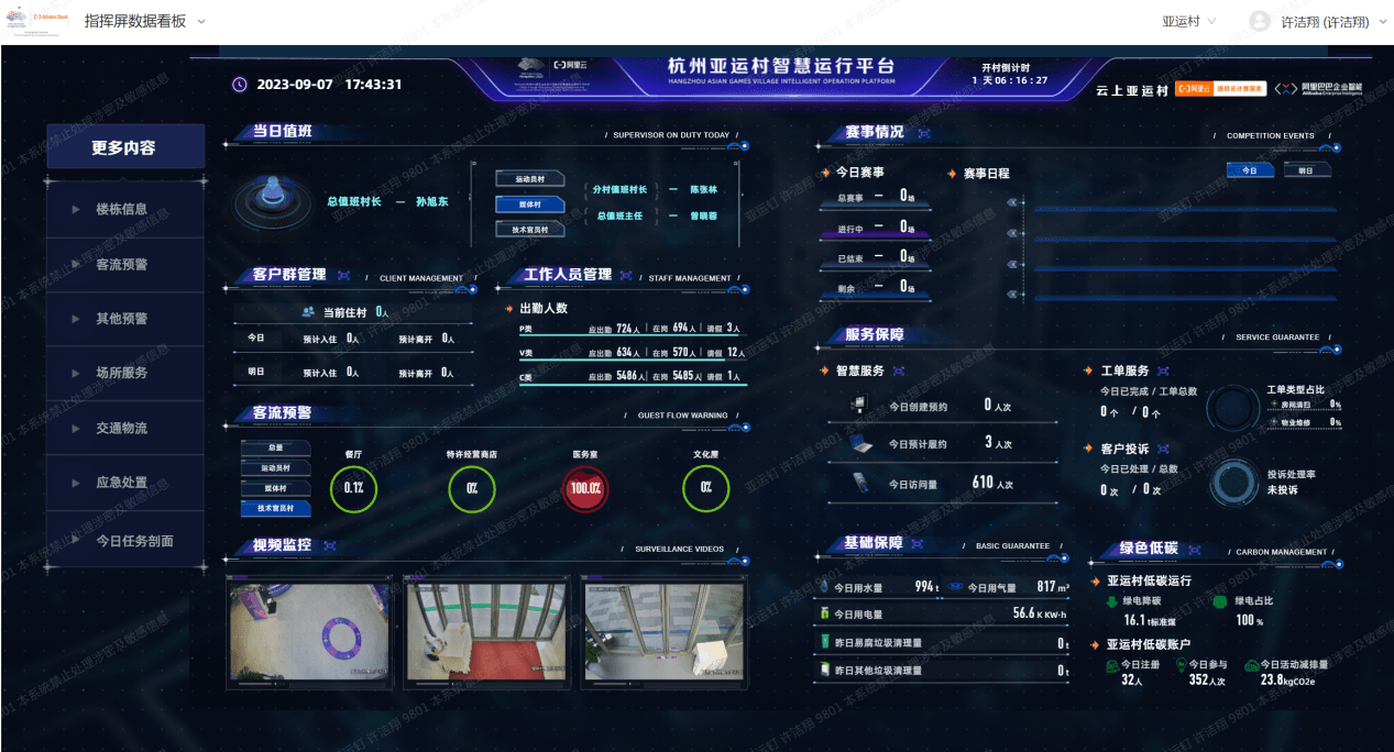 而杭州亚运村智慧运行平台(以下简称“VOC 平台”)作为“云上亚运村”三大核心板块之一的智能-智慧园区板块,充分发挥了“智能亚运”理念,为查看赛事期间的日常事务管理及整体运行情况的总体门户平台,协助指挥长及管理者提供快速、准确、全面的决策依据。