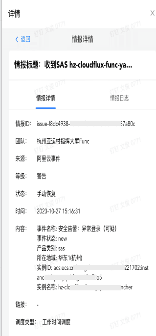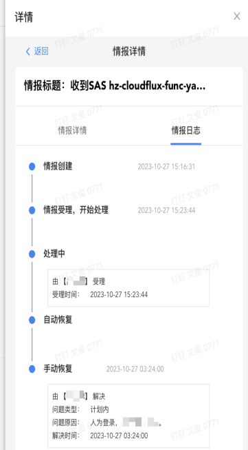同时我们基于钉钉打通多端、团队内协同,加速运维事件处理,并对运维事件进行完整的跟记录踪,帮助了解整体生产环境下事件的运行趋势。