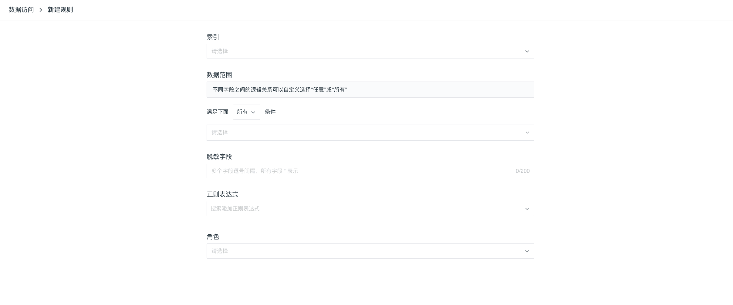 - 您可以在日志 > 数据访问中新建规则,选择已创建的日志索引基于角色对象设置其访问权限;