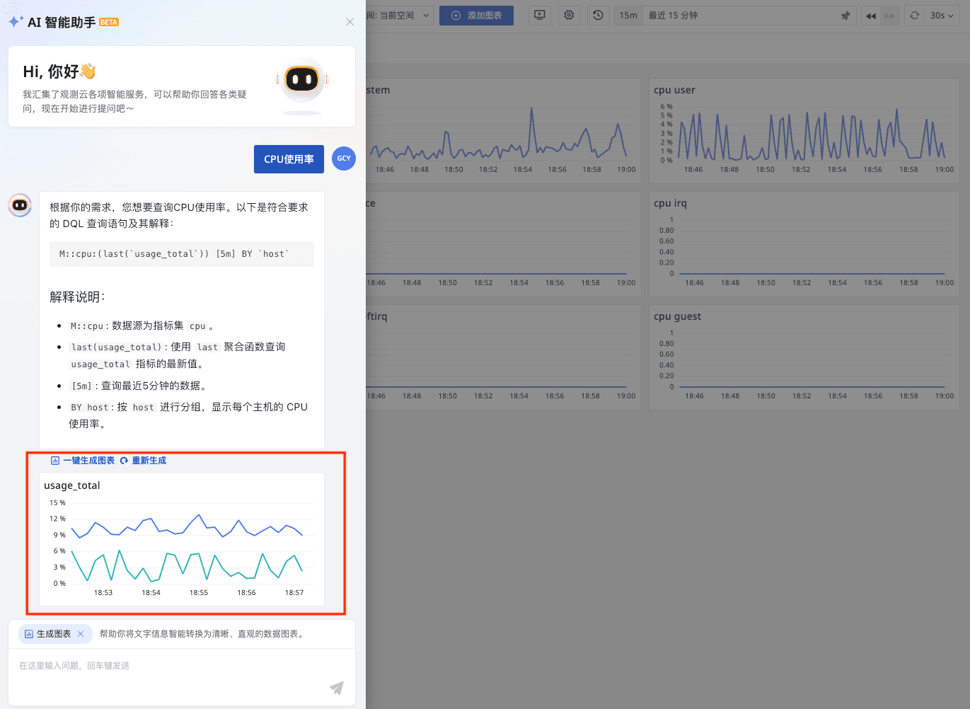 AI 智能助手新增生成图表:生成图表功能基于大模型自动分析用户输入的文本数据,智能生成合适的图表,解决了手动创建图表繁琐、图表选择困难等问题。