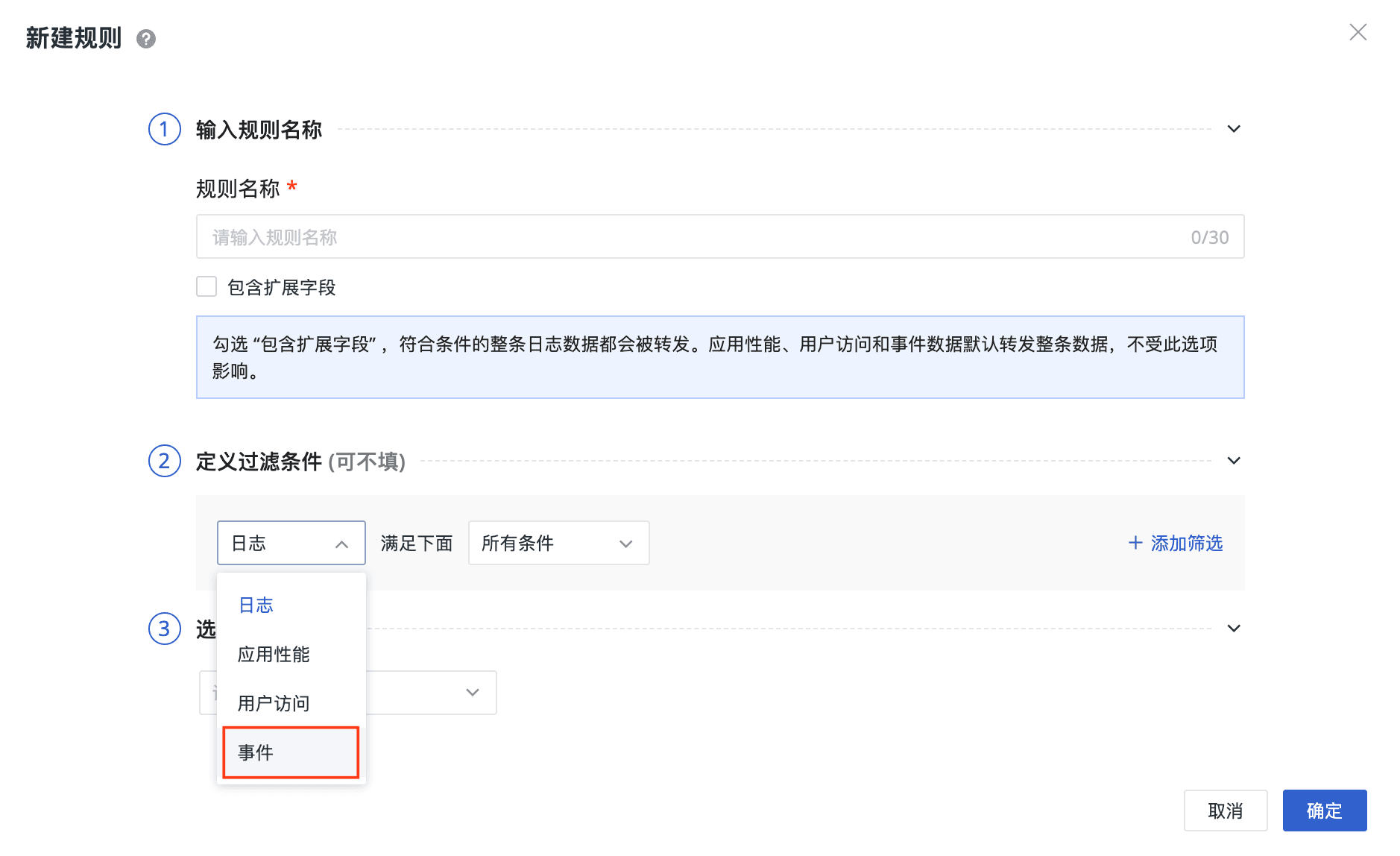 1、事件支持配置数据转发:支持配置事件类型的数据转发规则,将符合过滤条件的事件数据保存到观测云的对象存储及转发到外部存储,提供灵活管理事件数据的能力。