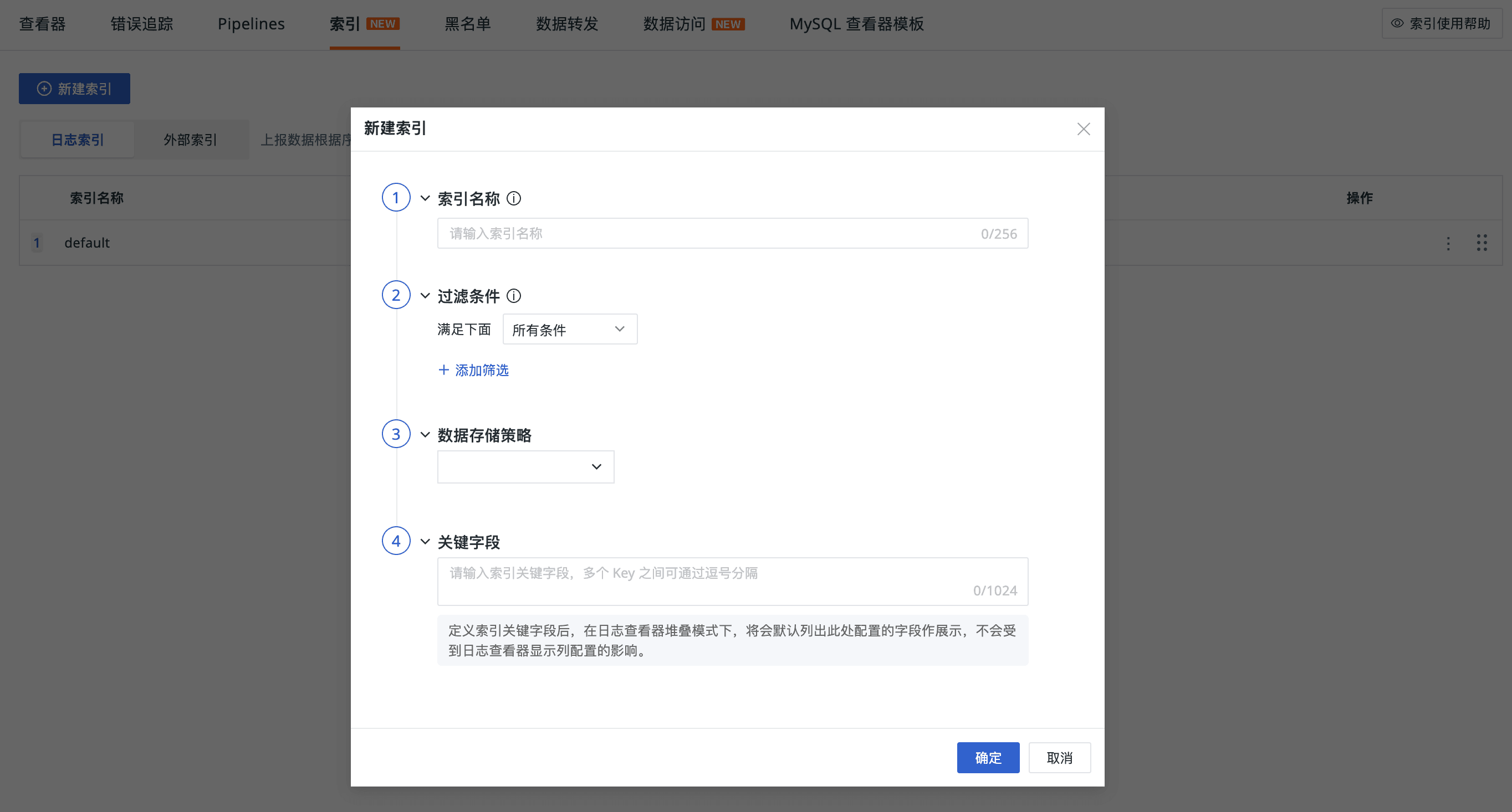 2、索引:在索引的维度下支持设置专属关键字段,在查看器堆叠模式下,对应索引的日志数据只列出关键字段。