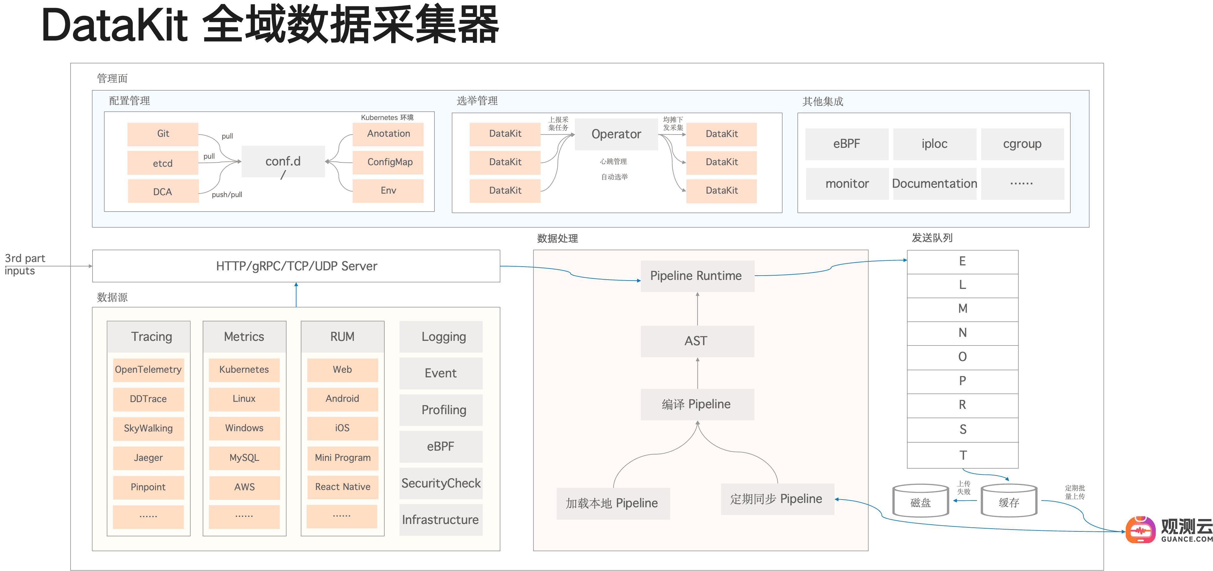 观测云作为一款全链路监控工具,支持从多种数据源集成数据,包括但不限于云服务、应用日志、系统日志、网络流量数据等。众所周知,尽可能多的收集数据,并对数据进行有效处理,是影响 SIEM 项目成败的关键能力之一。观测云通过“DataKit 统一数据采集套件+DataFlux Func 函数开发平台”的技术组合,覆盖多云多数据源的各种类型数据采集。并提供灵活的数据文本处理能力,为 SIEM 分析打好高质量数据样本基础。