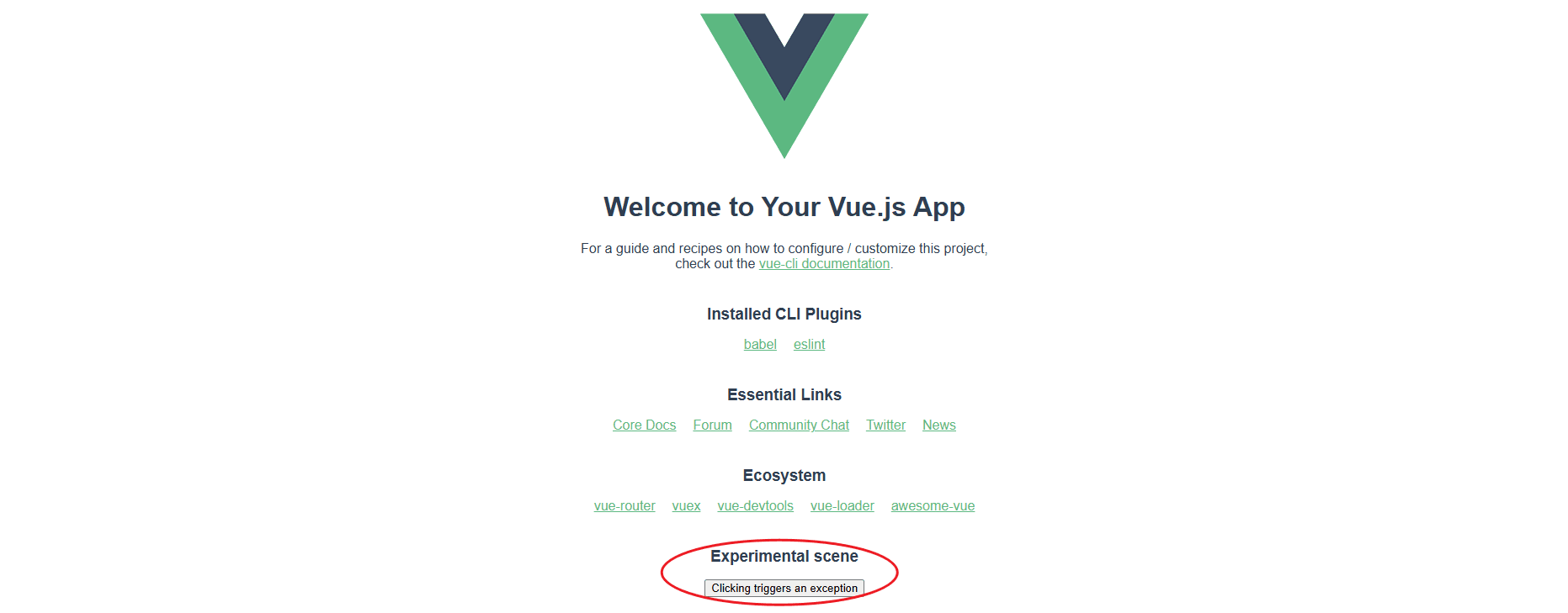 <li><button @click="throwError">Clicking triggers an exception</button></li>