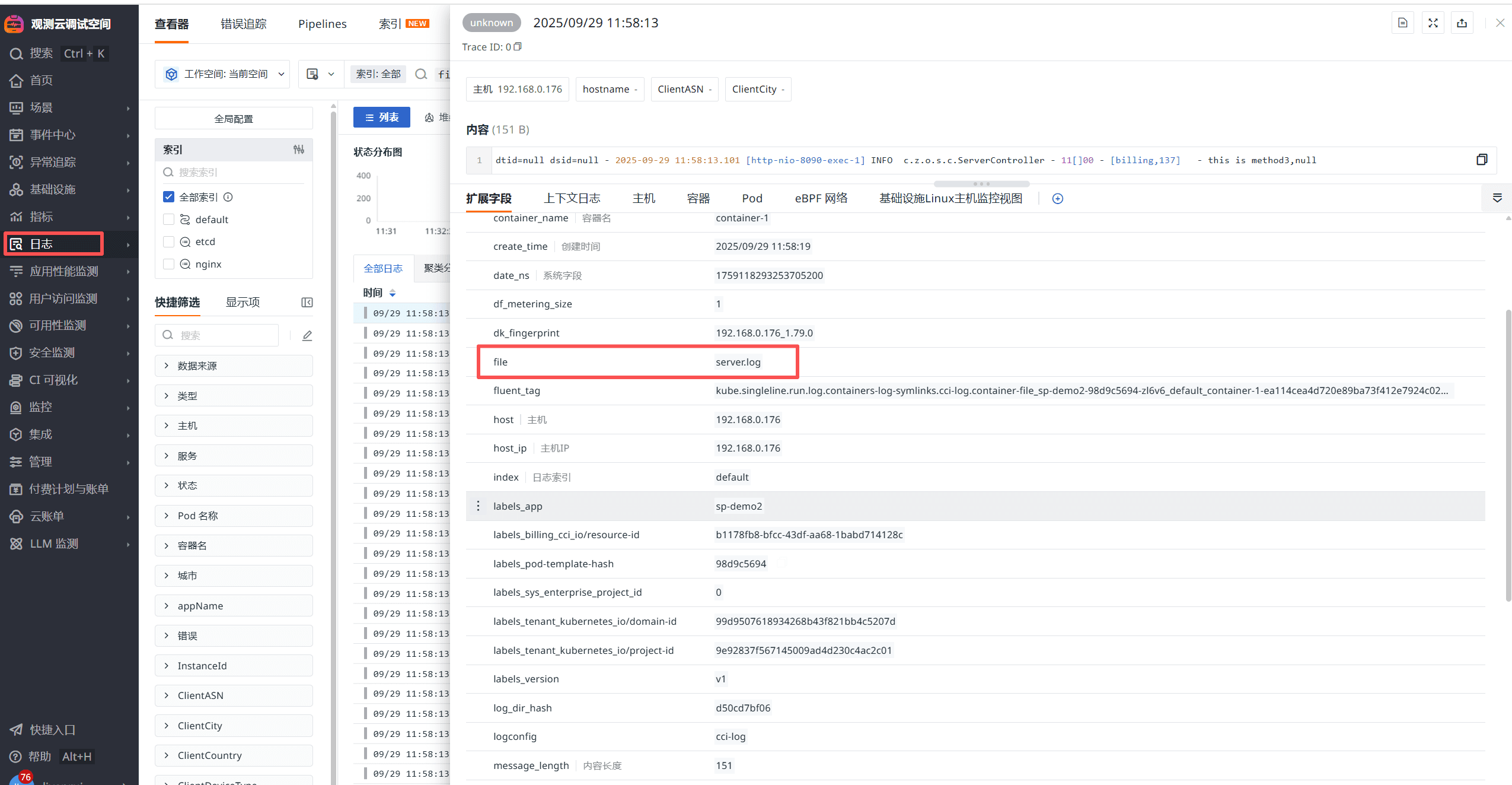 - 登录观测云控制台 → 日志查看器 ,可以看到相关日志已经被采集到了观测云。