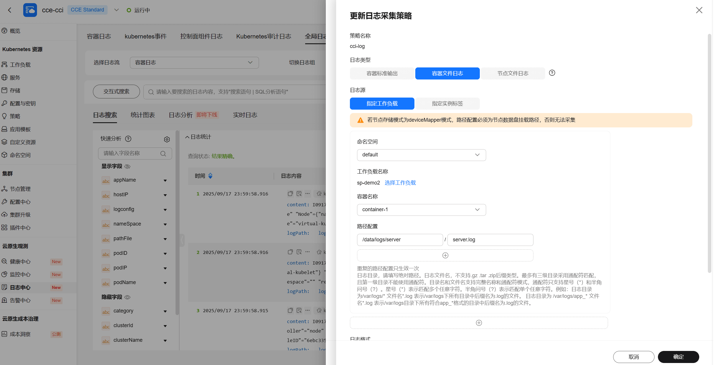 华为云 CCE 提供了云原生日志采集插件,采集了包含 CCE 集群以及弹性到 CCI 的实例的容器内日志,但对观测云来讲,观测云可以基于 DataKit Operator 以及提供一个 DataKit 的 DaemonSet 部署来实现 CCE 各节点的容器内的日志文件采集,但针对于对于 CCI 的这种 serverless 的容器内日志采集,观测云采集思路包含:
