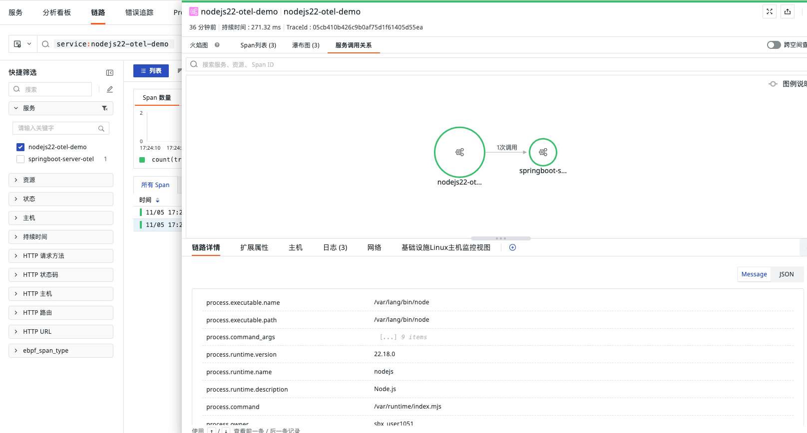 链路上报效果如下: