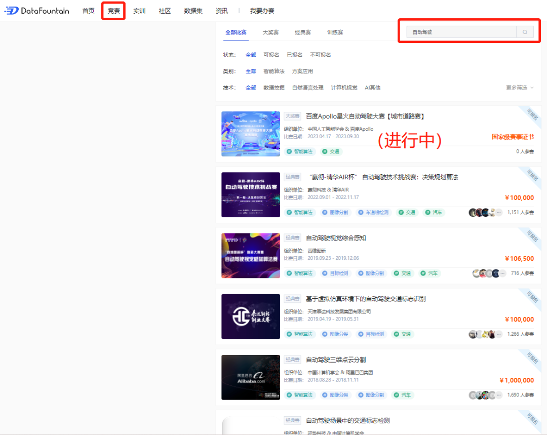 仅在自动驾驶领域,DF平台就已承接过「 自动驾驶场景中的交通标志检测」、「 自动驾驶三维点云分割」、「 基于虚拟仿真环境下的自动驾驶交通标志识别」、「自动驾驶视觉综合感知」等多个赛事,积累了一大批该领域的专业数智人才,为本次自动驾驶大赛提供了拥有一定技术水平和经验的选手资源。
