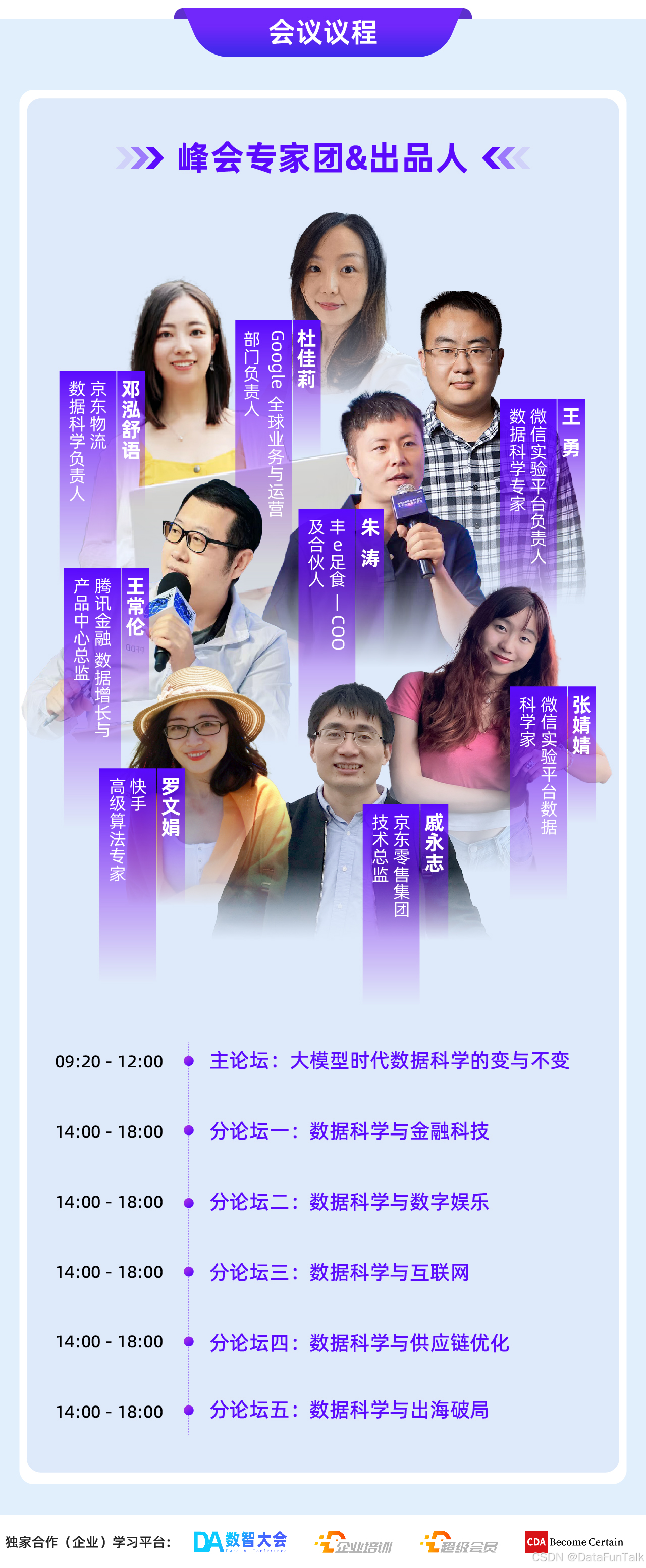 本次会议继续由DataFun社区主办,计划邀请30+位重量级数据科学家同台分享交流,深入辩证的探讨大模型时代数据科学在技术与应用的“变与不变”,立足不变夯实基础,顺应变化逐浪新潮流。