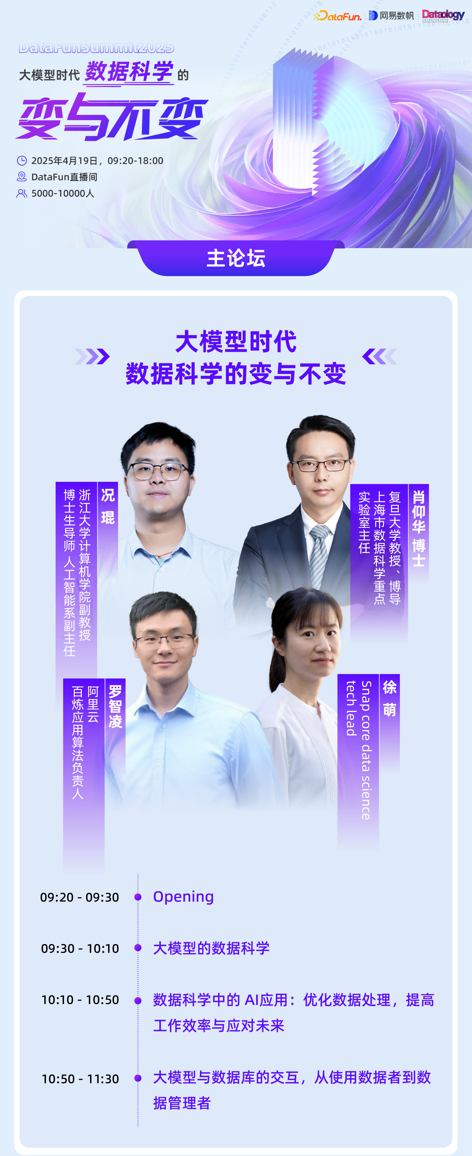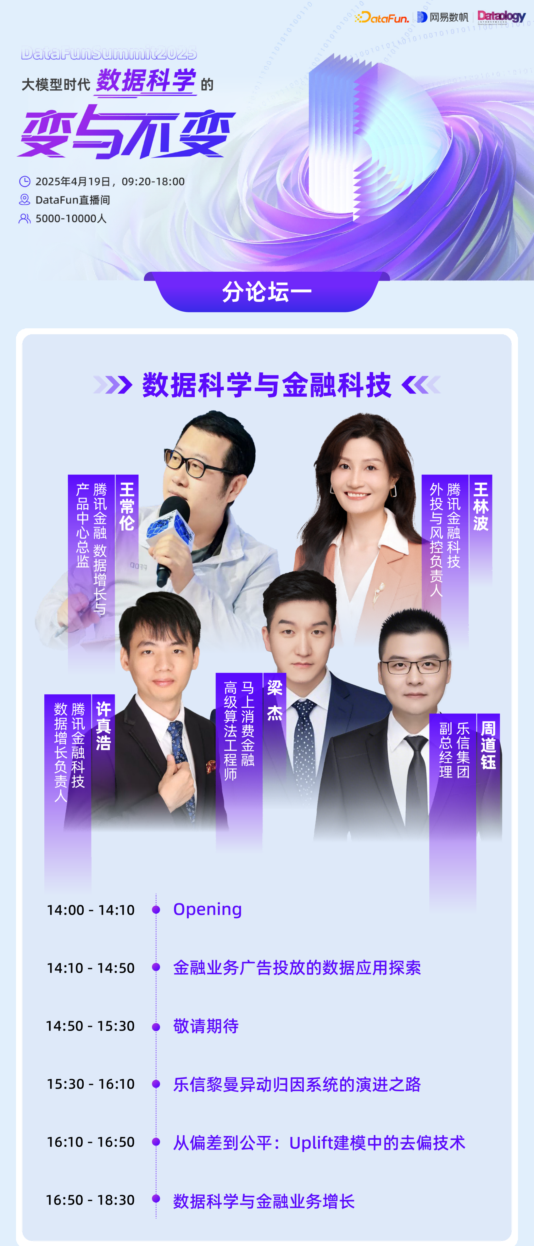 2025年4月19日,第75期DataFunSummit:大模型时代数据科学的变与不变将在DataFun线上社区举办,数据科学主题峰会已经连续举办5届,是国内少数关注数据科学主题和数据科学从业者的专业会议之一。