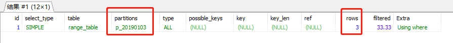 可以发现直接锁定到了分区p_20190103中并且总记录是3条,很明显分区的优势已经体现出来了,不需要再进行全表扫描了