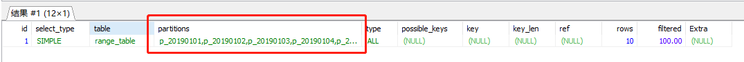 可以发现没有分区,且全表扫描,接着创建时间分区表和测试数据(注意:分区表一定要预先创建好)