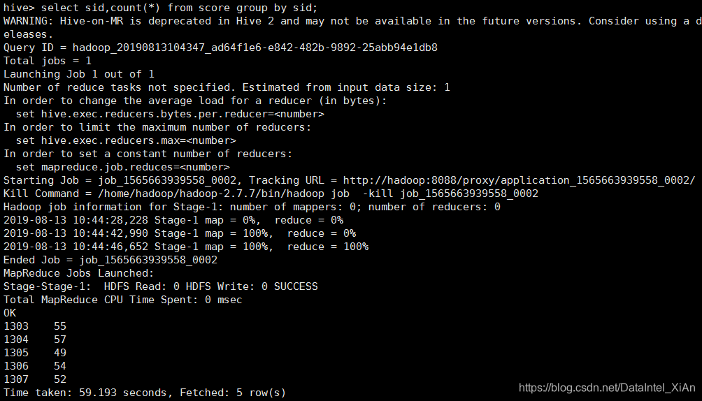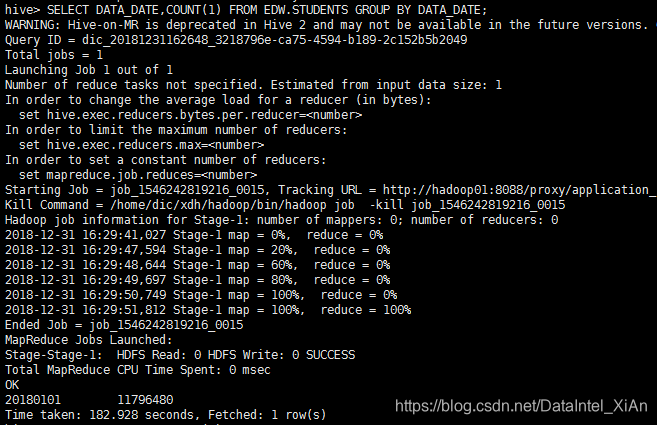 每次运行HiveQL的时候都会有这么一条警告【WARNING: Hive-on-MR is deprecated in Hive 2 and may not be available in the future versions. Consider using a different execution engine (i.e. spark, tez) or using Hive 1.X releases.】