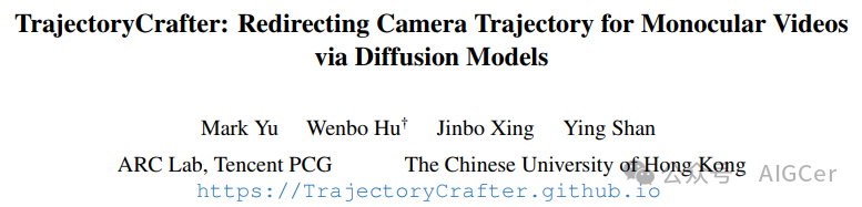 论文名:TrajectoryCrafter: Redirecting Camera Trajectory for Monocular Videos via Diffusion Models
