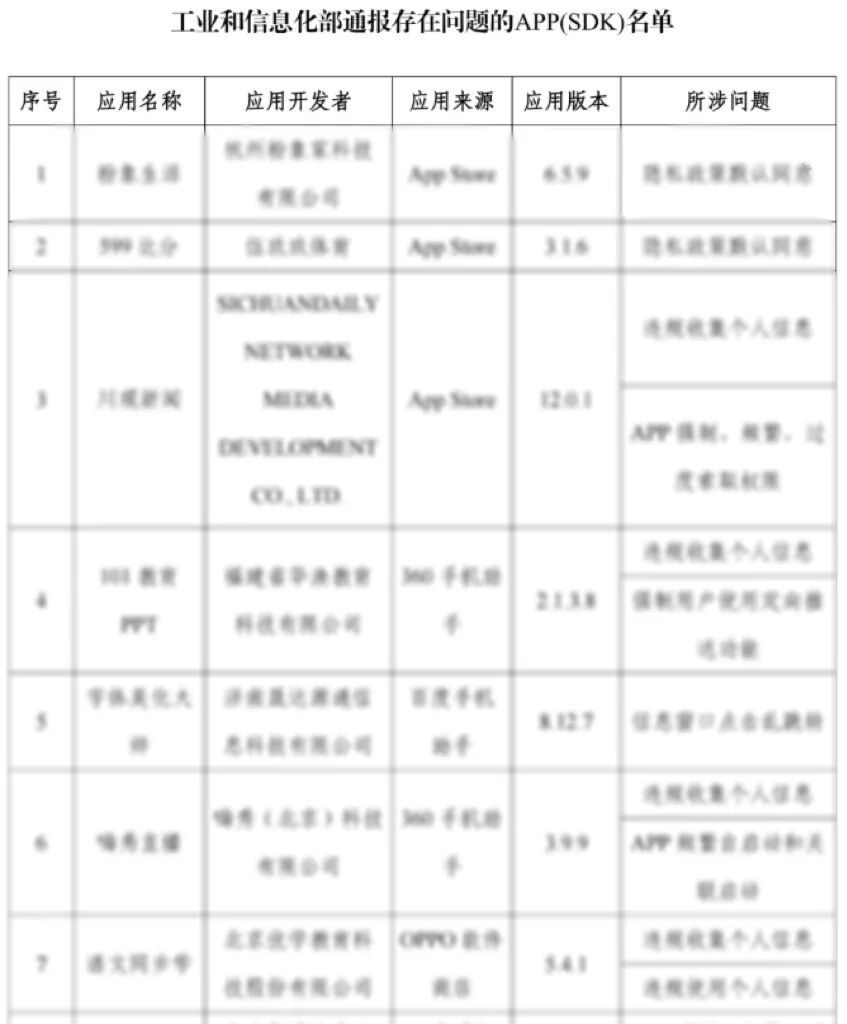 (原文链接:工信部通报!这42款APP及SDK存在侵害用户权益行为)