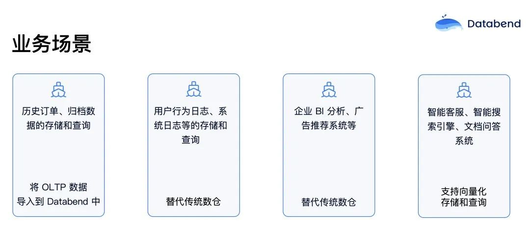 Databend Cloud 主要定位在云上大数据存储及分析,从现在实际用户使用场景来看 Databend Cloud 给用户提供了: