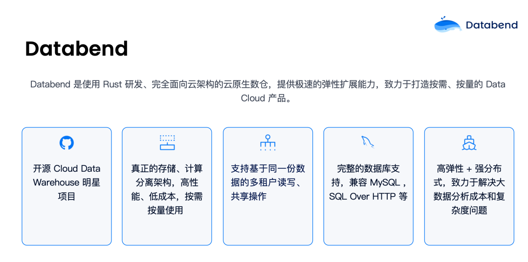 Databend是一款使用 Rust 研发、开源、弹性、低成本,基于对象存储也可以做实时分析的新式数仓,具有即时扩缩容能力,能在数分钟内增加数百倍的算力,为企业提供了一个用于存储、管理和分析大量数据的集中式平台,从而助力企业更准确地洞察业务、制定战略。