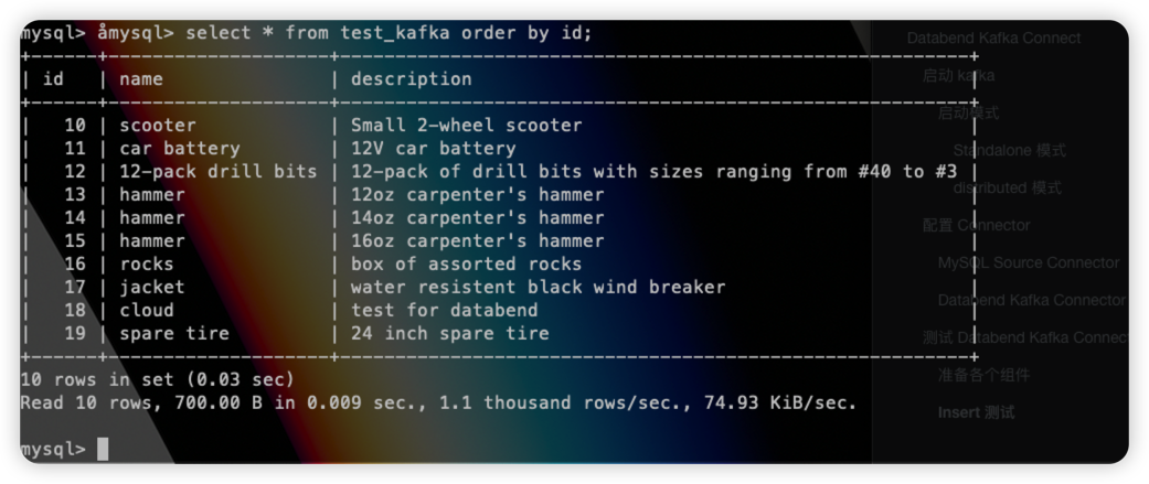 测试 Databend Kafka Connect